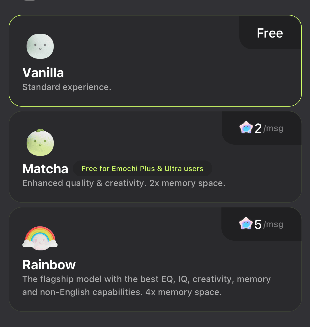 You can choose Emochi Plus and Emochi Ultra.